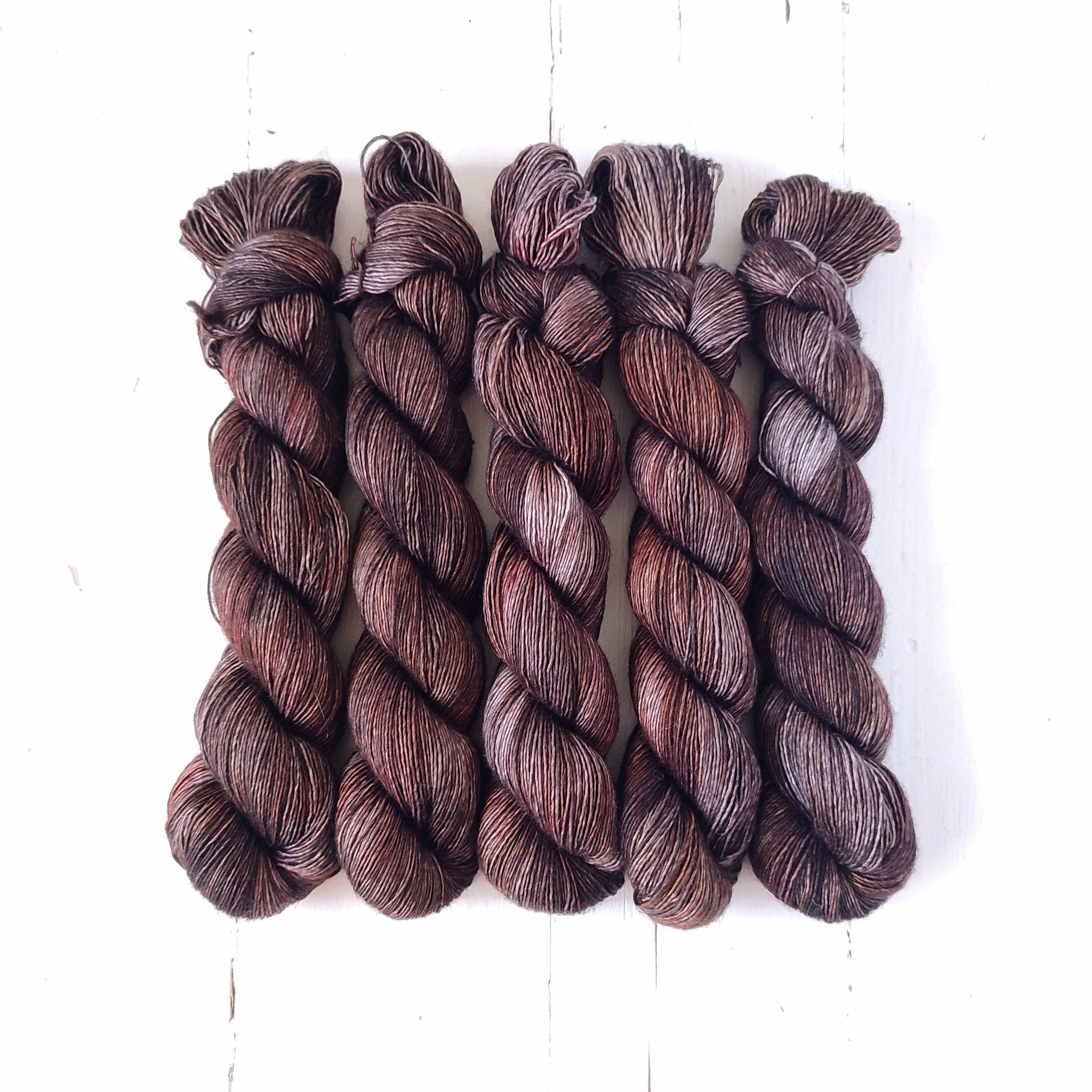 Years ago, I made this colourway when steampunk and coffee was a thing in Cape Town. Coffee is of course still a thing - and Capetonians are serious (!!!!) about their brew. This colourway combines what I think is the best - coffee dark browns and rich chocolate browns in one single skein!