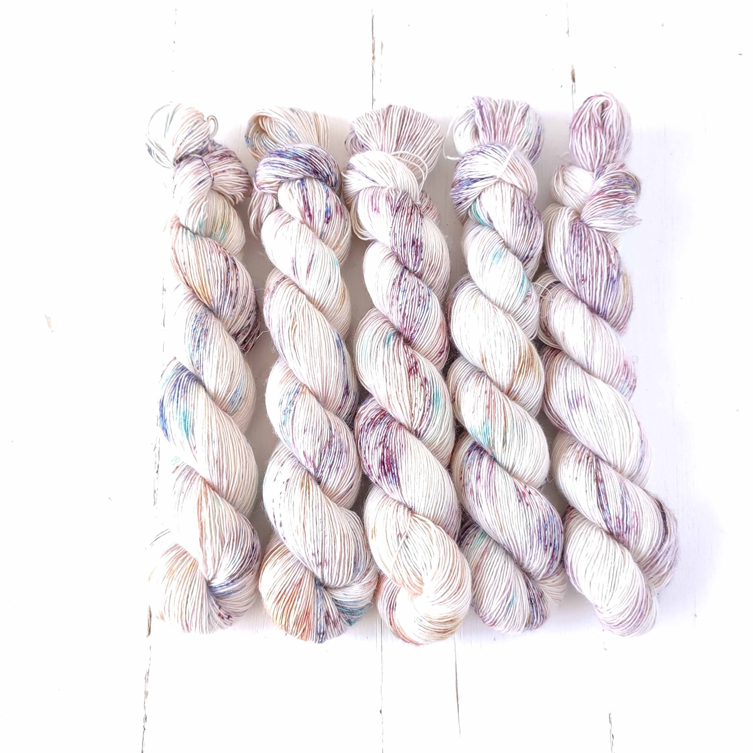 Dutch Still Life forms a perfect neutral with hints of copper, brown, teal-y turquoise and indigo; will knit out to a delicate, tweeded effect - and will work well with all kinds of blues, browns and warmer, autumnal tones.