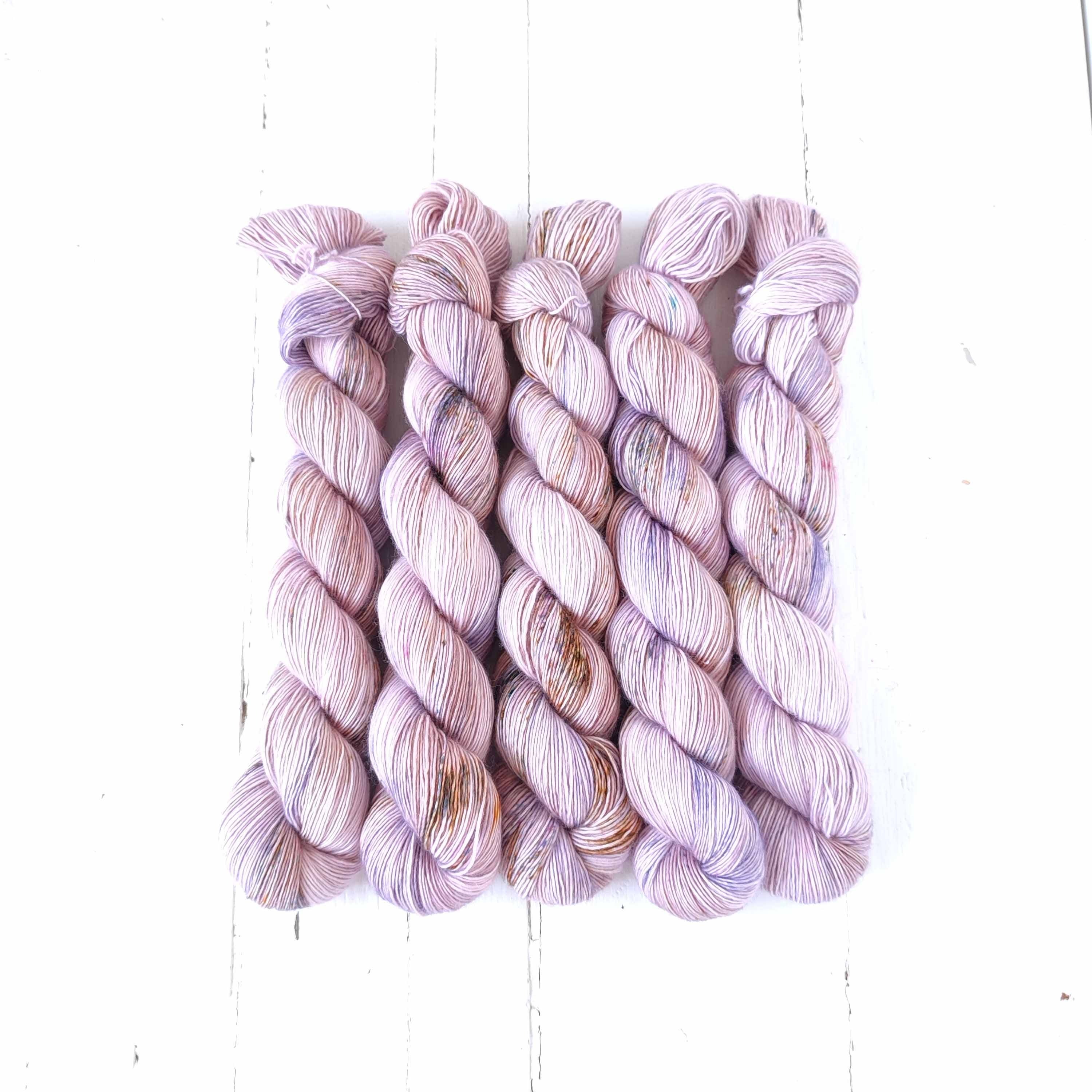 Ghosted hints at pale colours - a pale blossom pink, lilacs, a hint of lavender; but a scattering of speckles gives it a bit more heft. It will pair well with neutrals and darker colours alike.