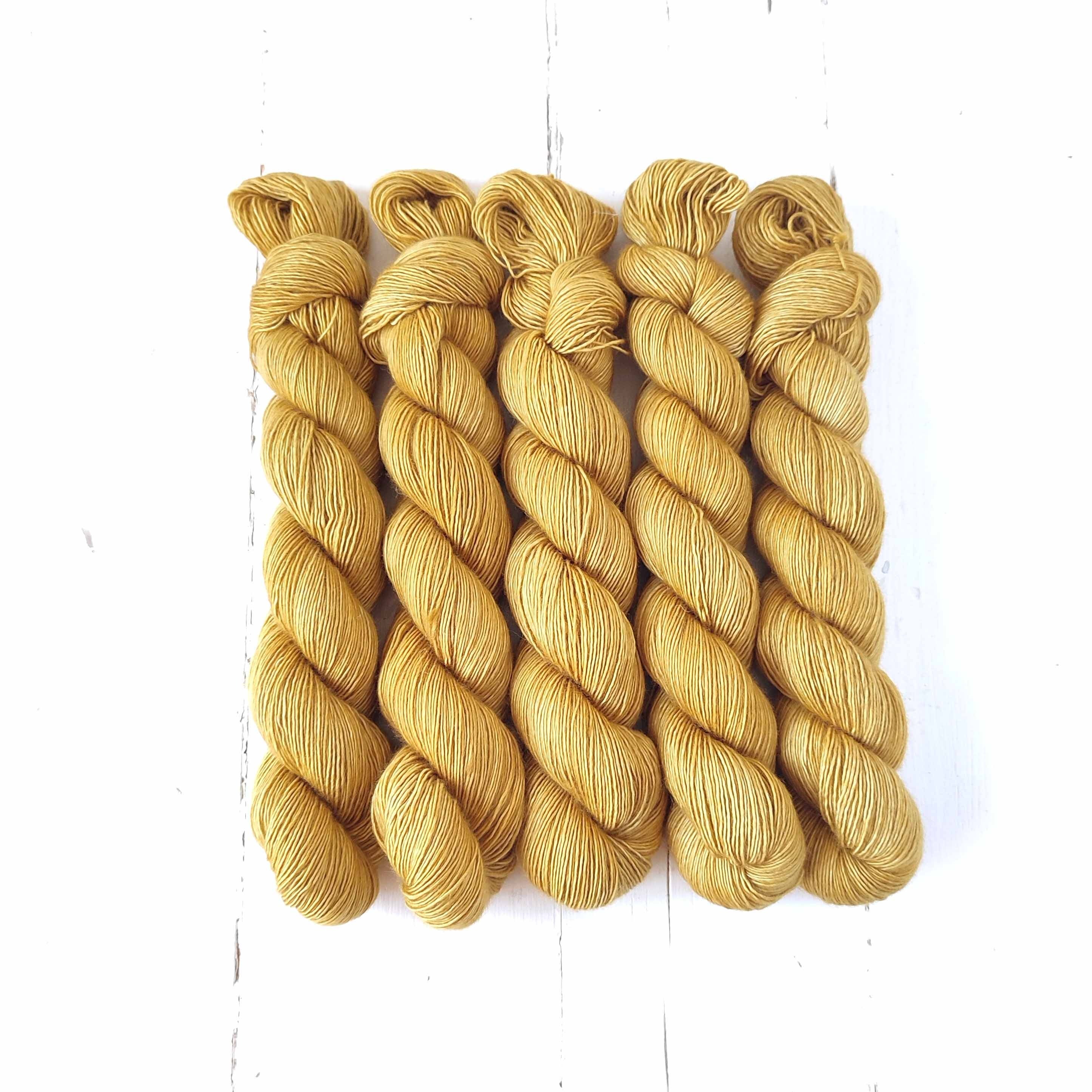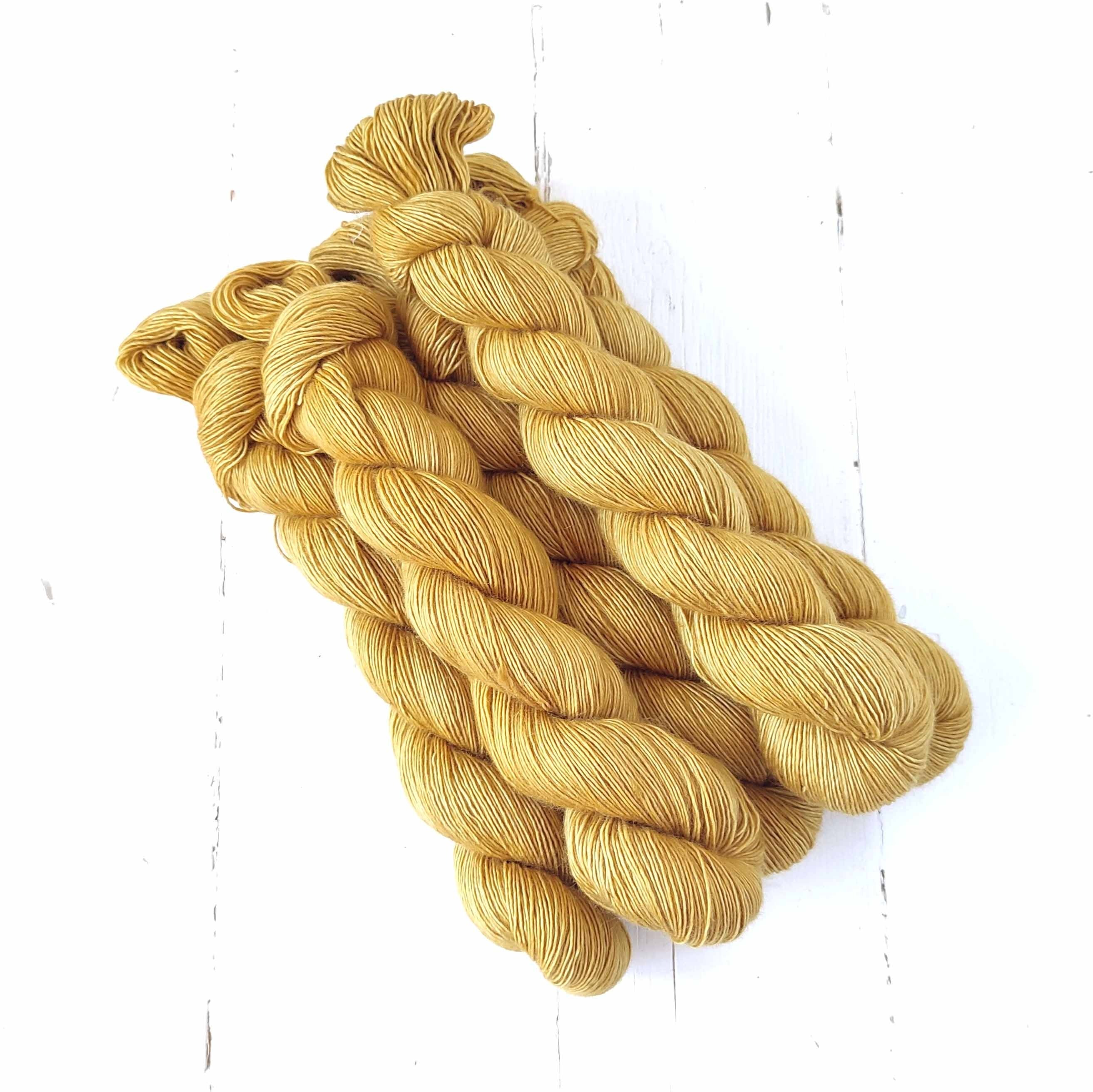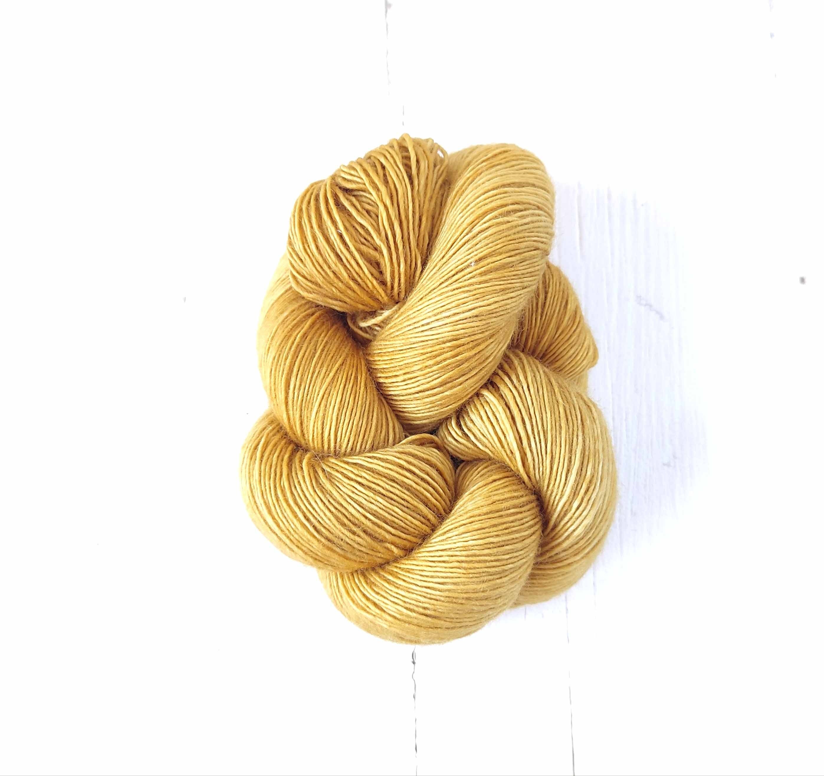 Kliluk Gold is a warm, antiqued golden colour inspired by the golds of the Kliluk Lake in British Columbia. It is a medium-toned, semi-solid colourway.