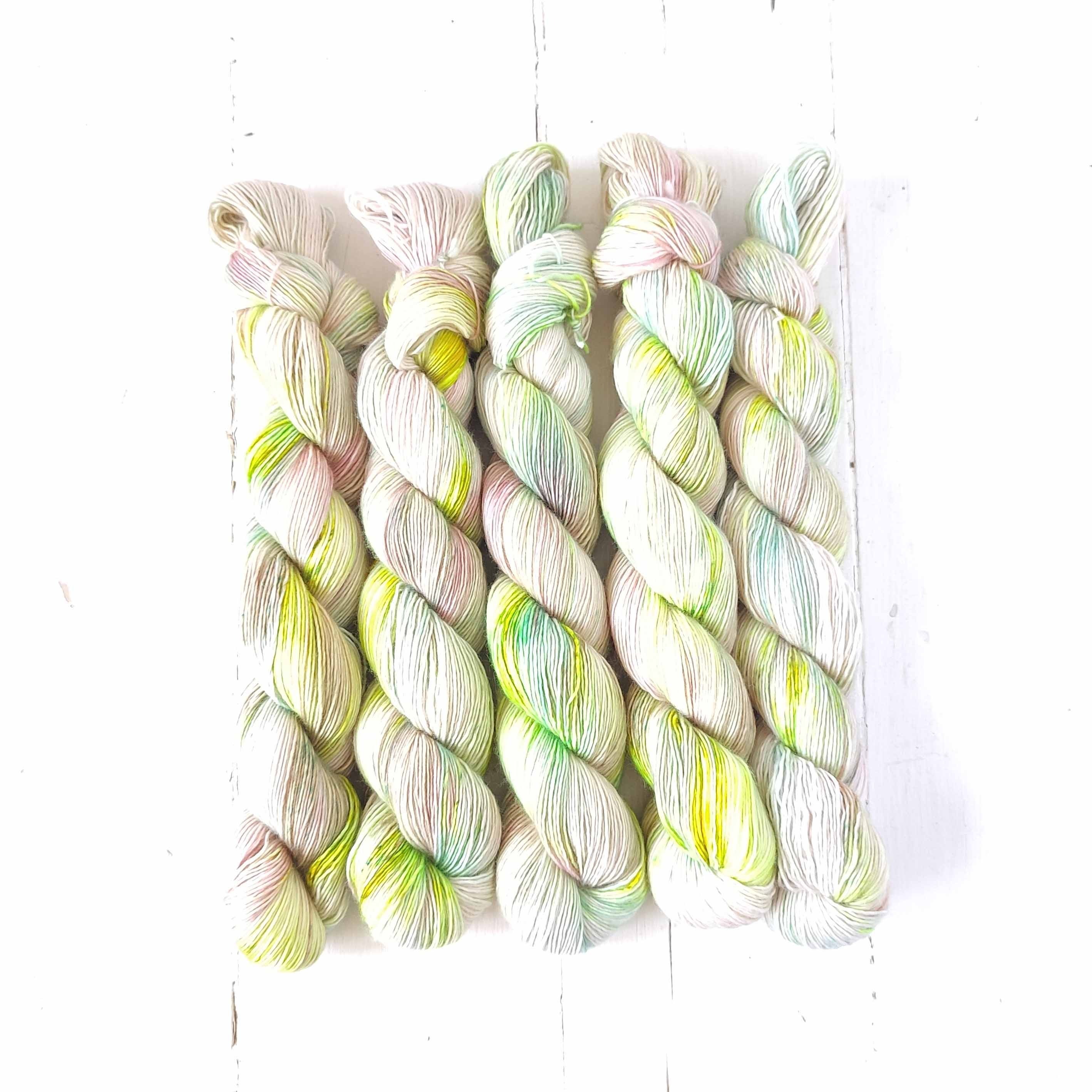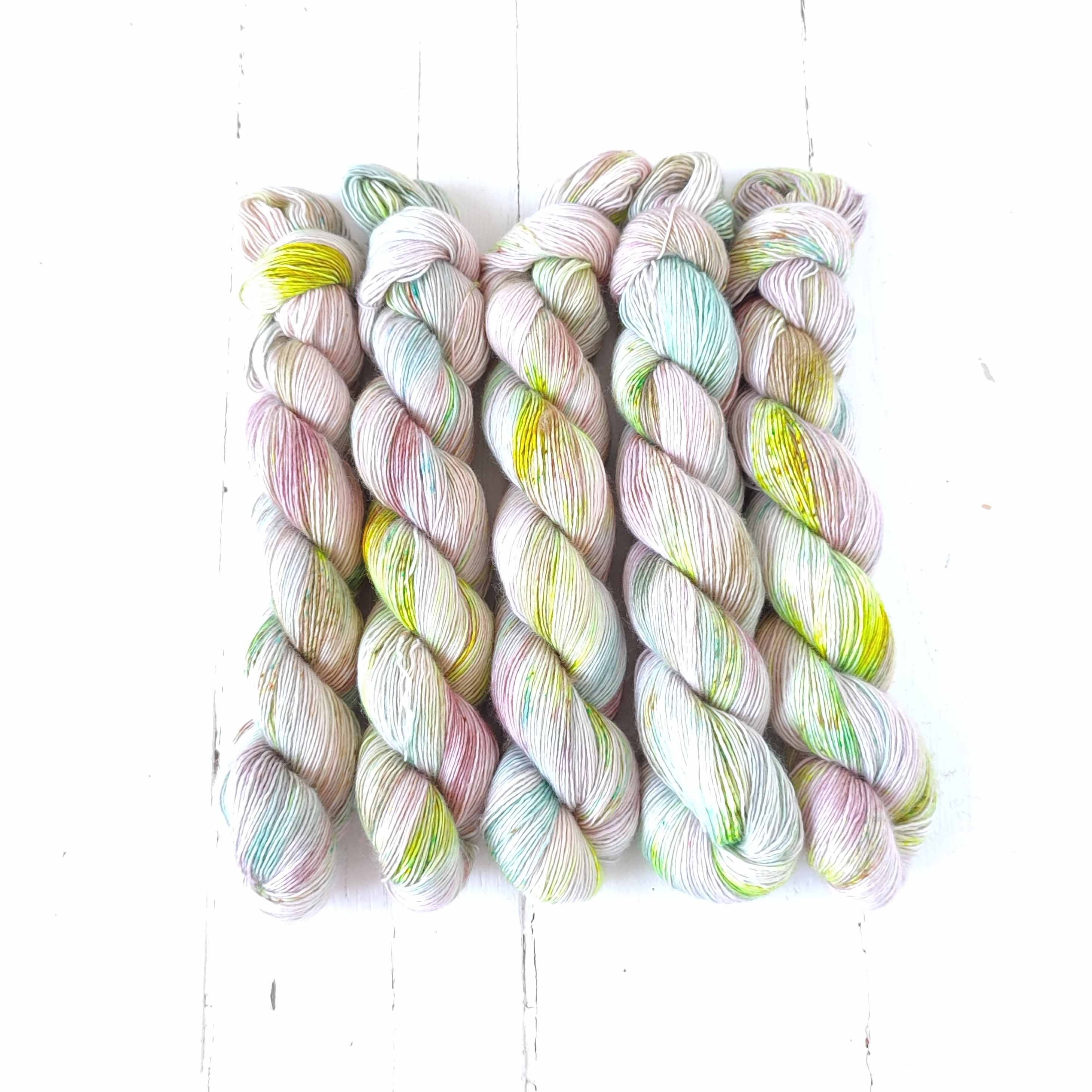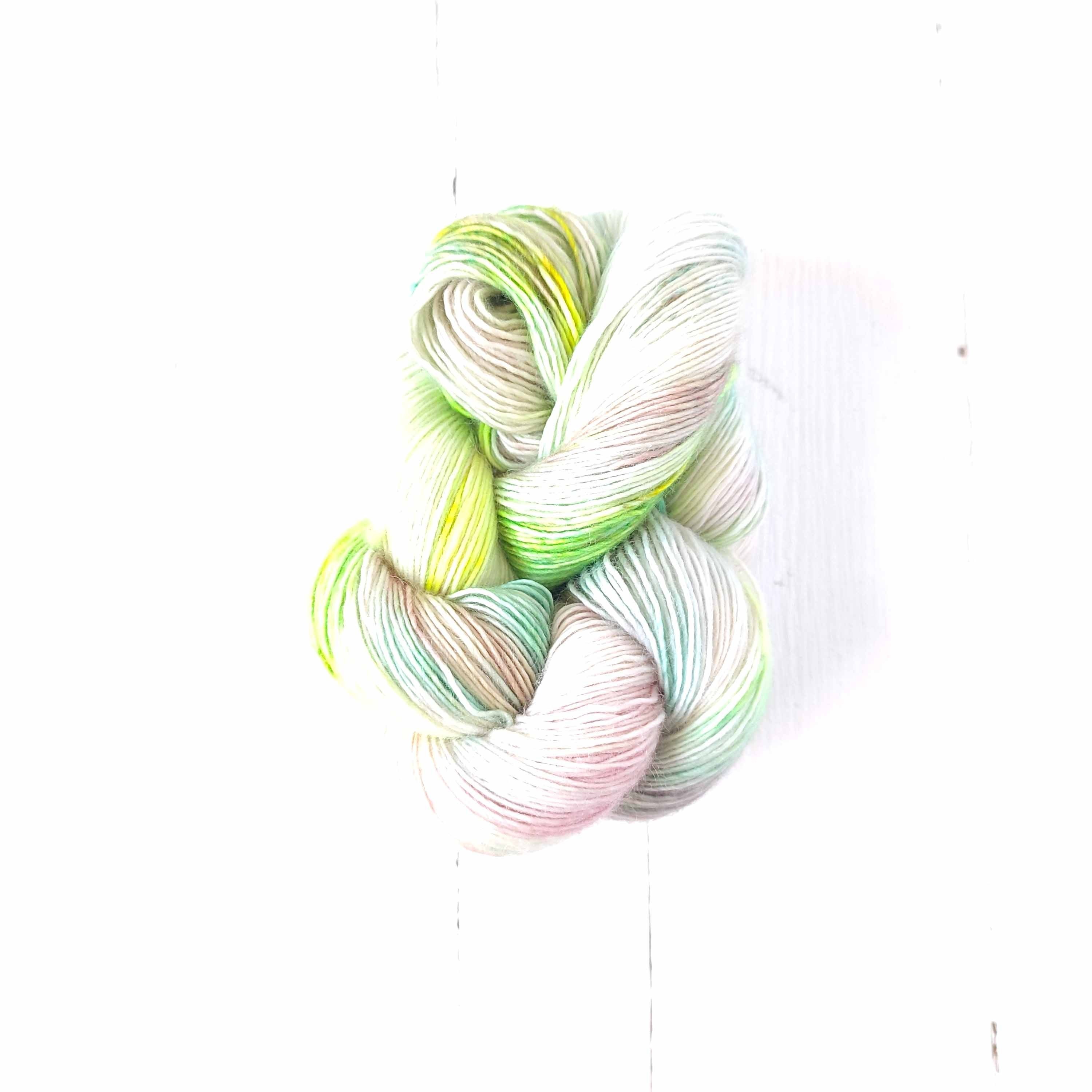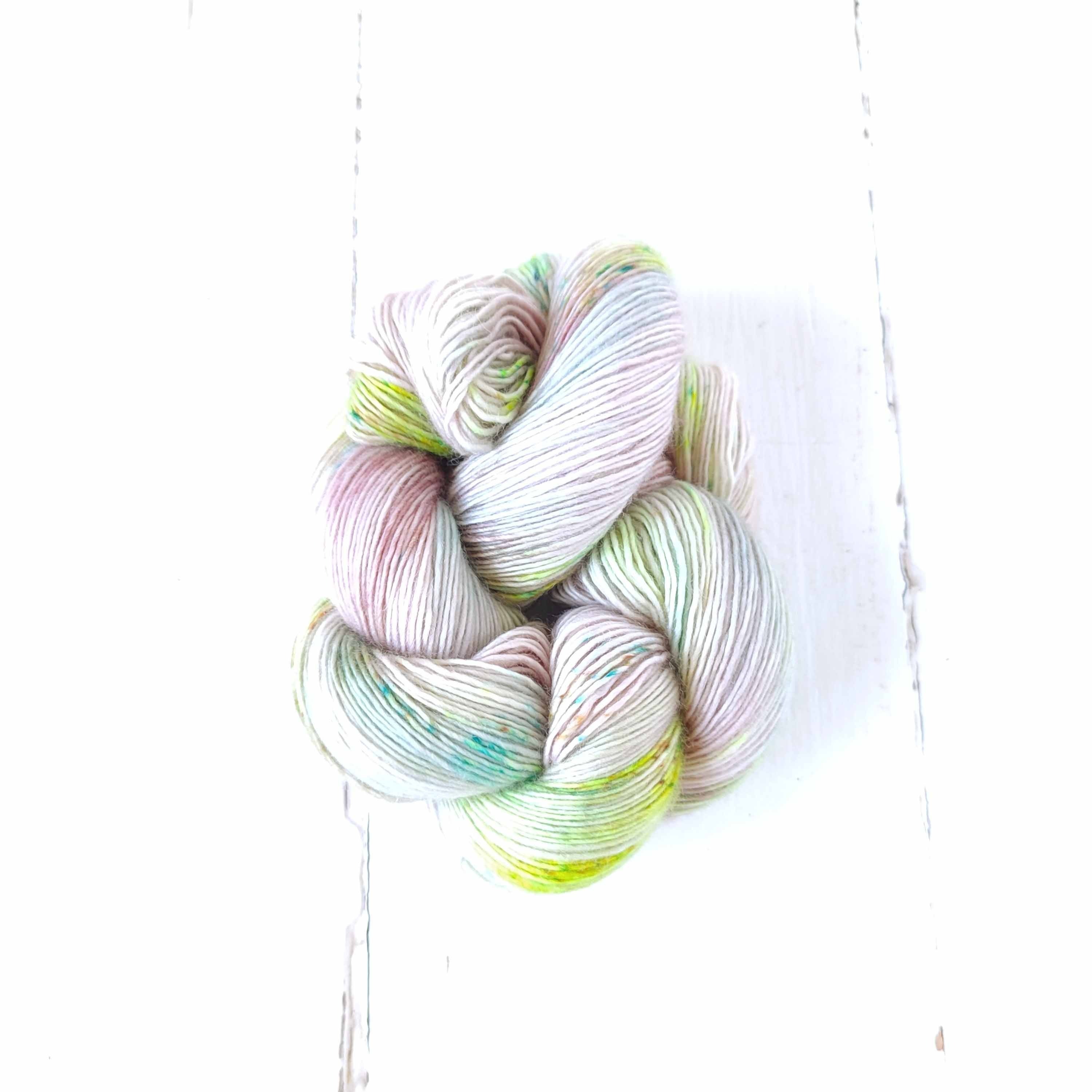 Need a neutral that will show your needles a good time? This may be it! A delicate neutral but with a punch of neon - this will be suited to textured stitches like linen stitch - or even a light coloured colourwork contrast colour.