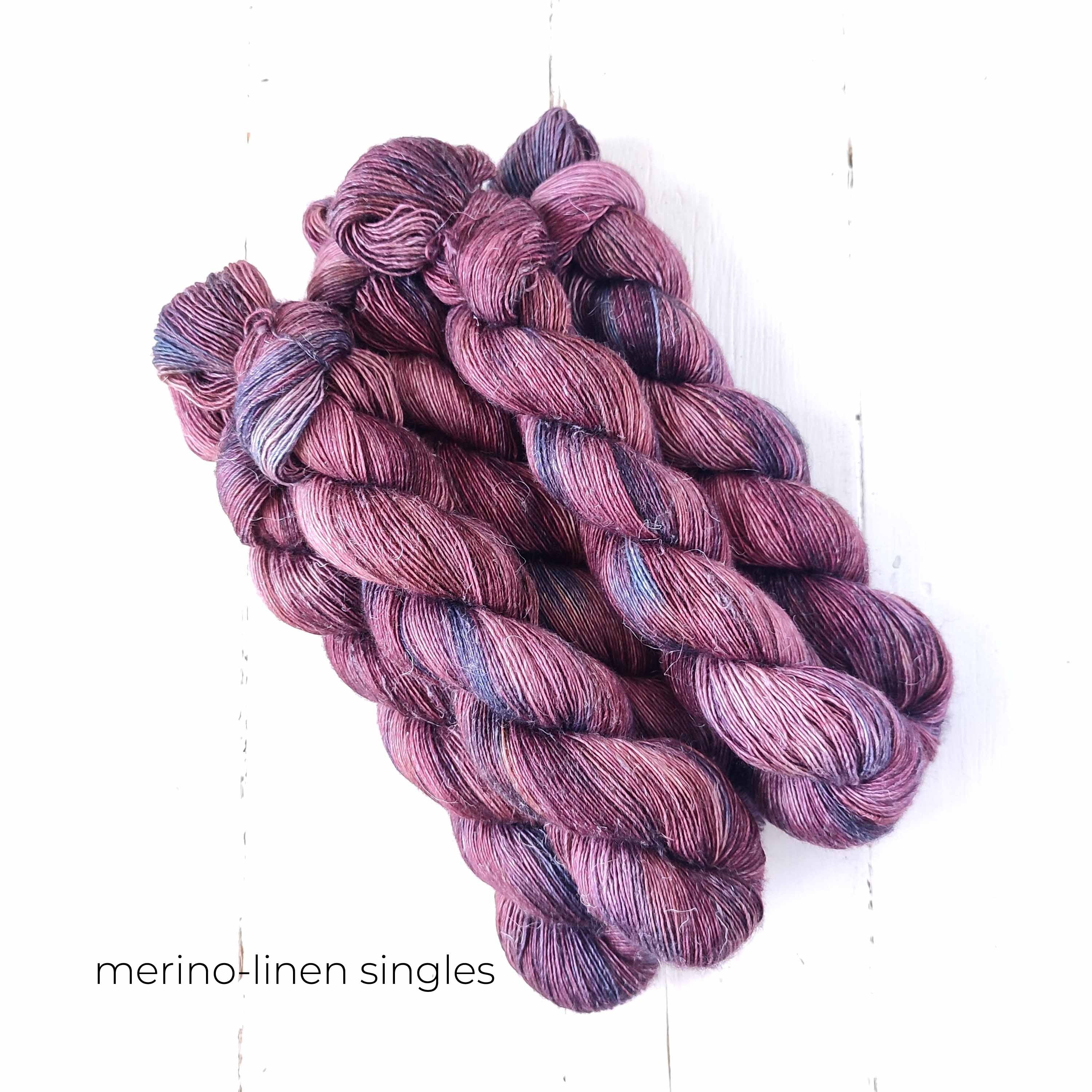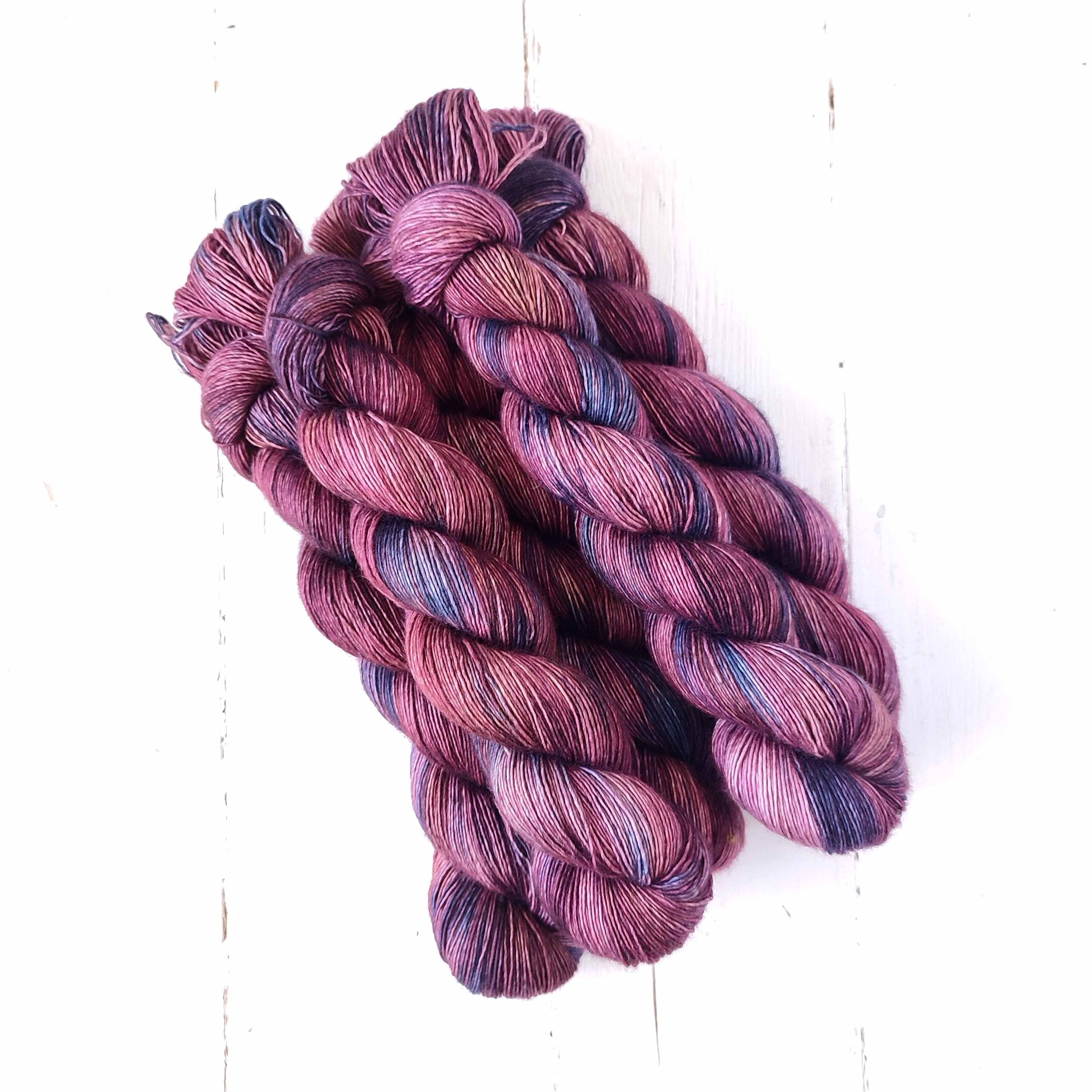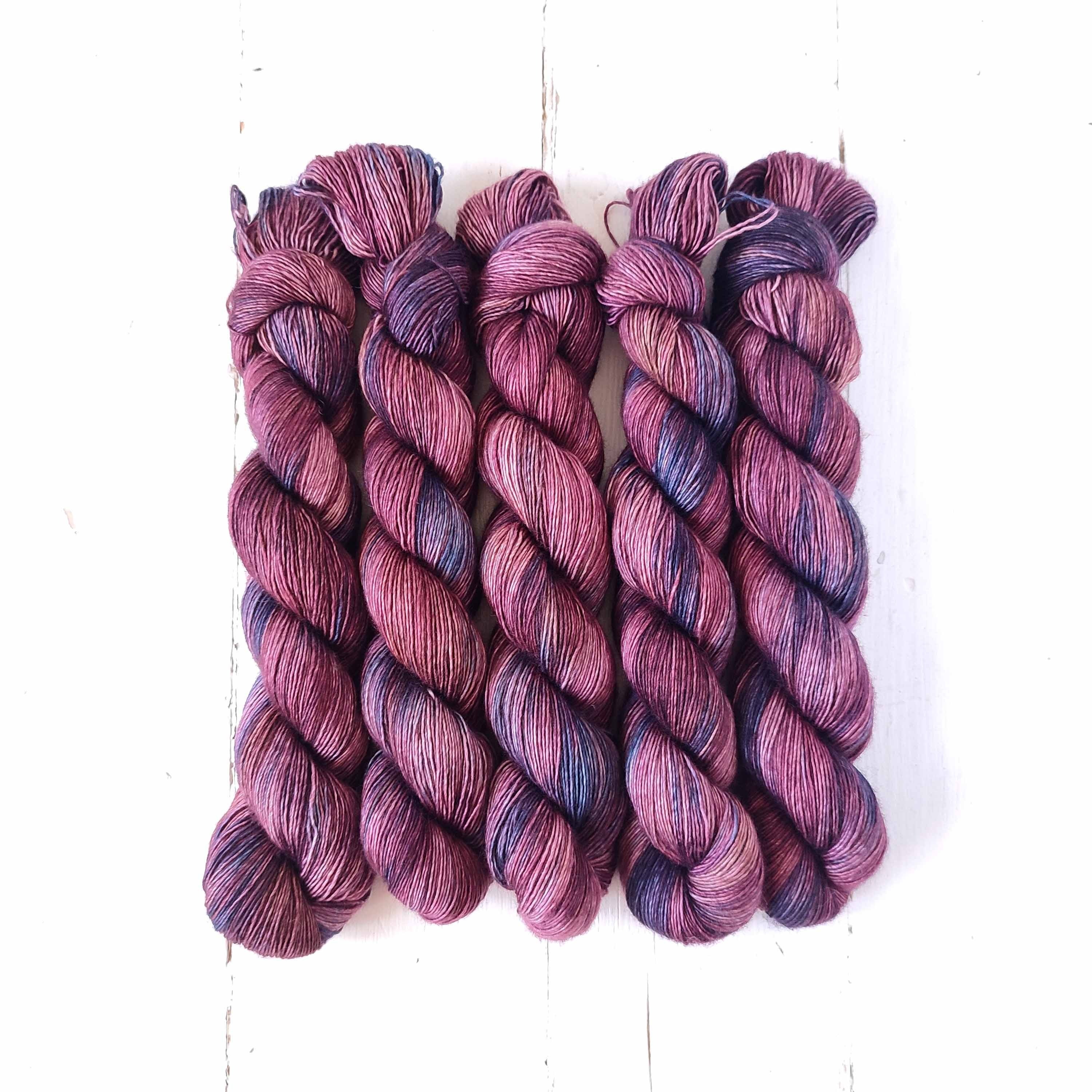 Wine dark combines shades of plum, and faded red, and a hint of steely blue into a medium-toned variegated colourway.